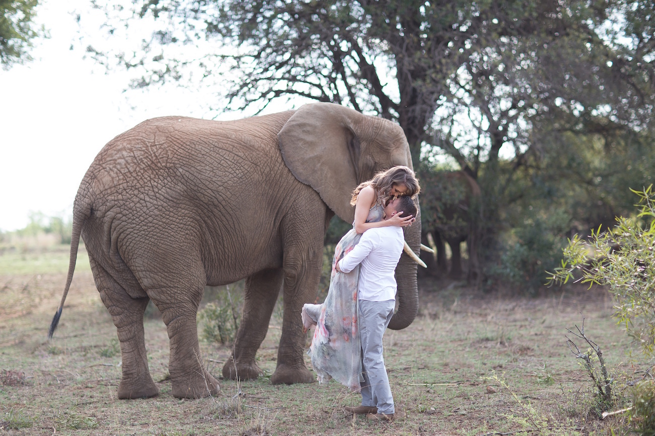 Happy Valentine’s Day, lovelies! Totally one of my favourite days of the year. And to celebrate, I have a dreamy styled engagement shoot to share with you today that is truly South African! Kyle and Lindsay love the bushveld, so for their couple sesh, they settled on a glamorous safari shoot. They chose Glen Afric as their location – a wildlife sanctuary and rehabilitation centre with an outstanding reputation for animal care, which was also the filming location for the BBC series Wild at Heart. They took a walk in the bush in their finery (including that iconic Silver Swallow gown!) and came across the facility’s elephant family, who let’s be honest, totally steal the show! Marissa of Studio40Six was on scene to capture the magic.