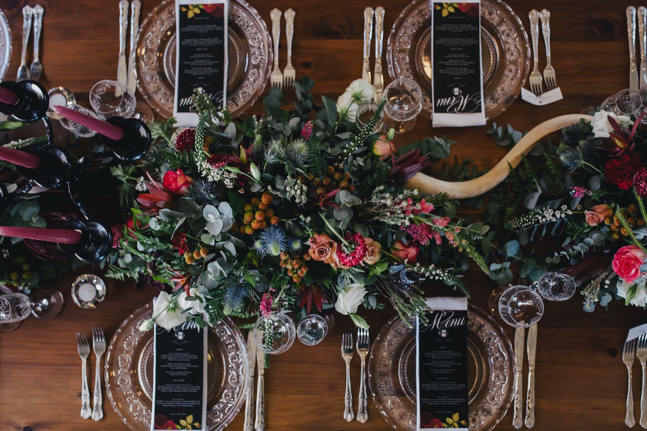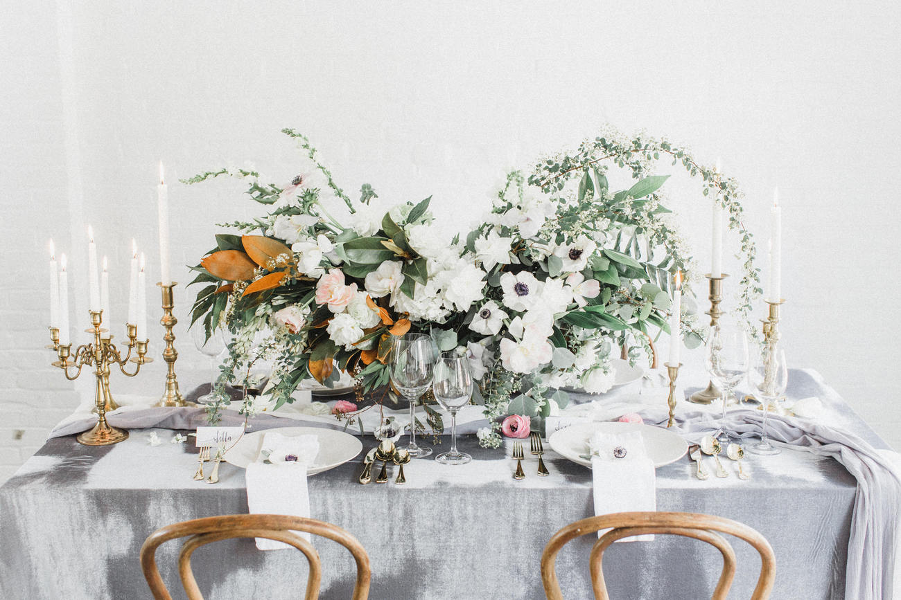 First velvet swept the runways, and now it’s making a major impact on wedding world. As mentioned above, texture is super important right now, and velvet adds that gorgeous, luxe feel, whether it’s through table linens, bouquet ribbons, bridesmaid dresses, grooms’ blazers, or plush furnishings. I have no doubt we’ll see even more creative uses of velvet coming through in 2018. It’s also the perfect complement to our next trend…