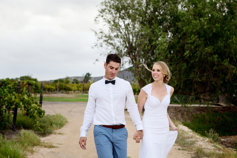 If you ever thought that planning a wedding on a budget meant sacrificing style for your big day, then take note, because today’s wedding is budget beautiful. And that’s partly because bride and groom Bianca and MJ made some seriously smart decisions. First, they picked a venue that had a lot of natural beauty going for it and didn’t need a whole lot of dressing up, and that’s immediately half the battle right there. Then Bianca followed her own personal style preference, for casual minimalism, and picked a palette of white, green and gold, which allowed the use of budget-friendly florals that still look super elegant, like paper white baby’s breath and sage green eucalyptus. They still managed to add some adorable personal touches to the classic tables, like giant scrabble table ‘numbers’ and little terracotta plant pot favours. And finally, Bianca and MJ picked great suppliers they could rely on, and let them do their thing, including photographer Liesl Le Roux. The result? A perfect summer wedding day in the countryside, with all of the pretty but none of the fuss.