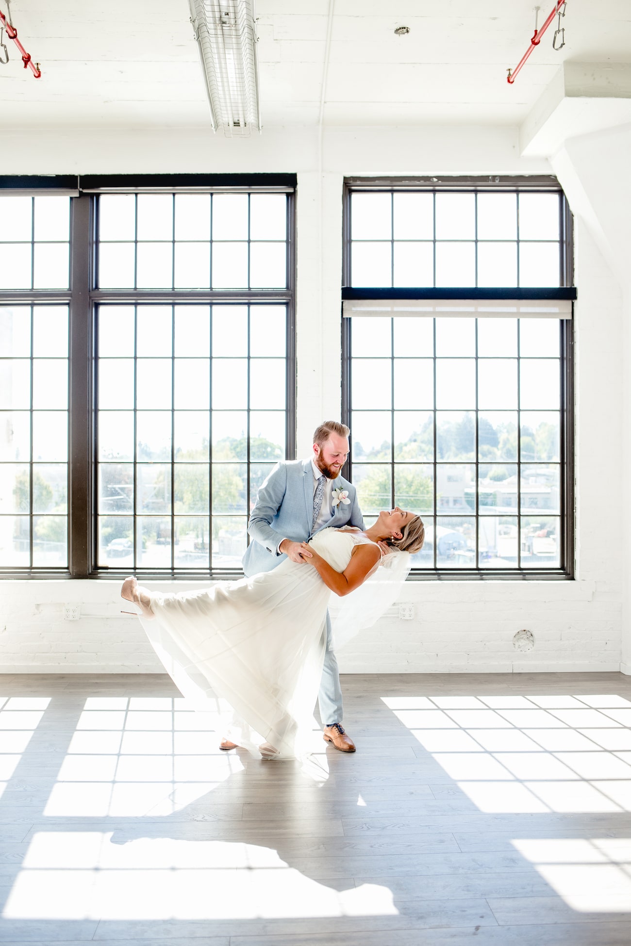 Photography: Kara Taylor Photography | Venue: The Portland Studio | Styling: Peachy Keen Coordination | Event Planning: Peachy Keen Coordination | Floral: Wishing Well Florist | Stationery: Letters & Dust | Wedding Cake: Next Dimension Bakery | Rentals: Vintage Meets Modern | Makeup: Eye Shine Beauty | Wedding Dress: Brides for a Cause | Veil: Brides for a Cause | Submitted via: Matchology