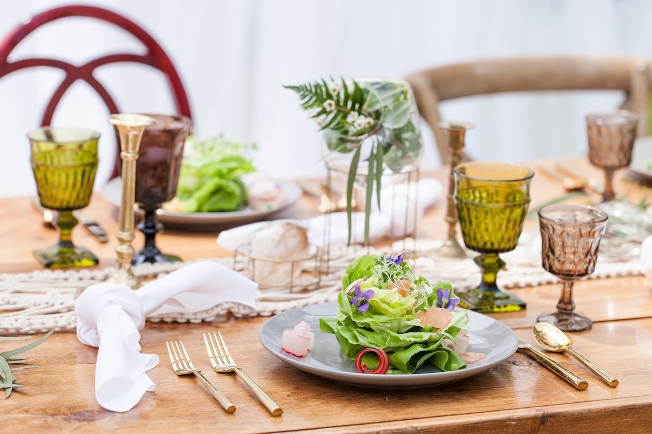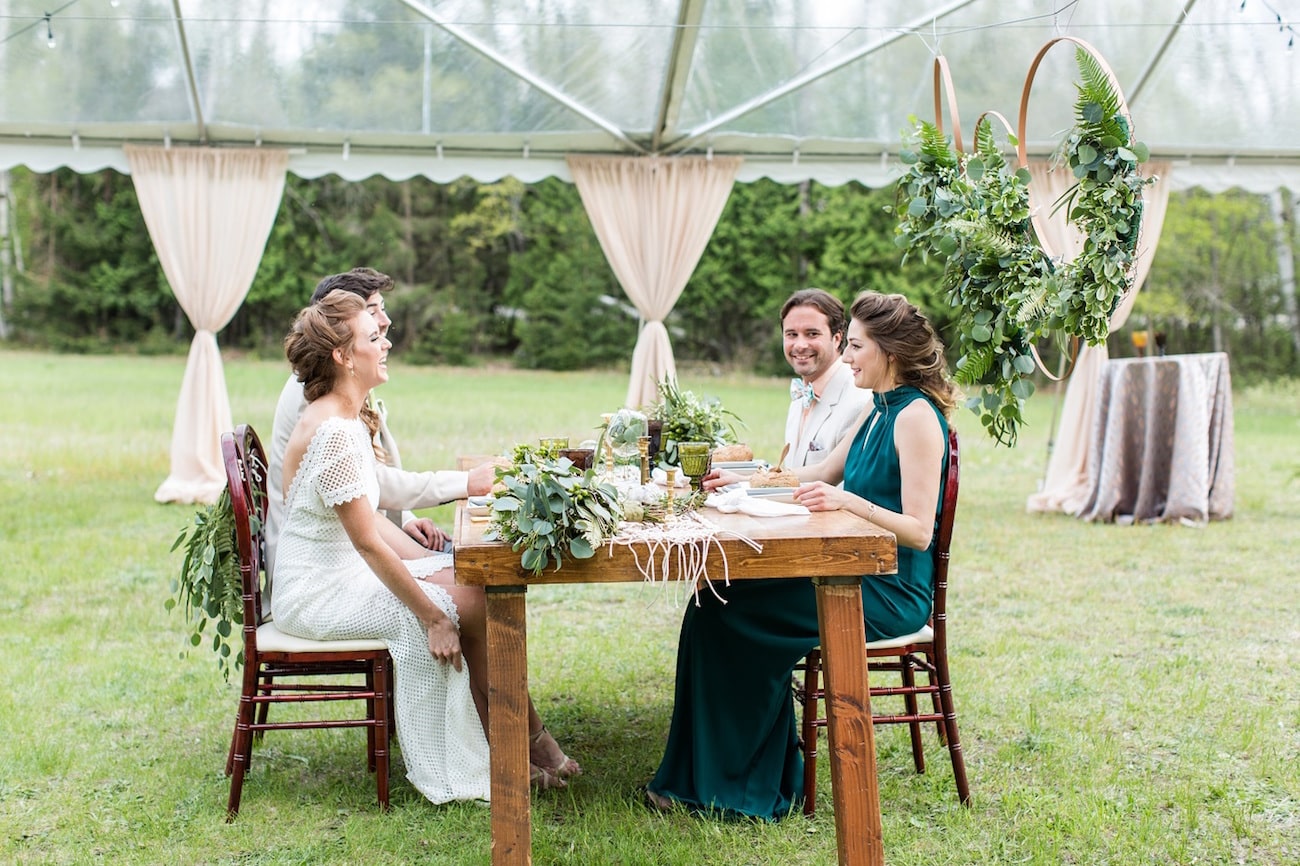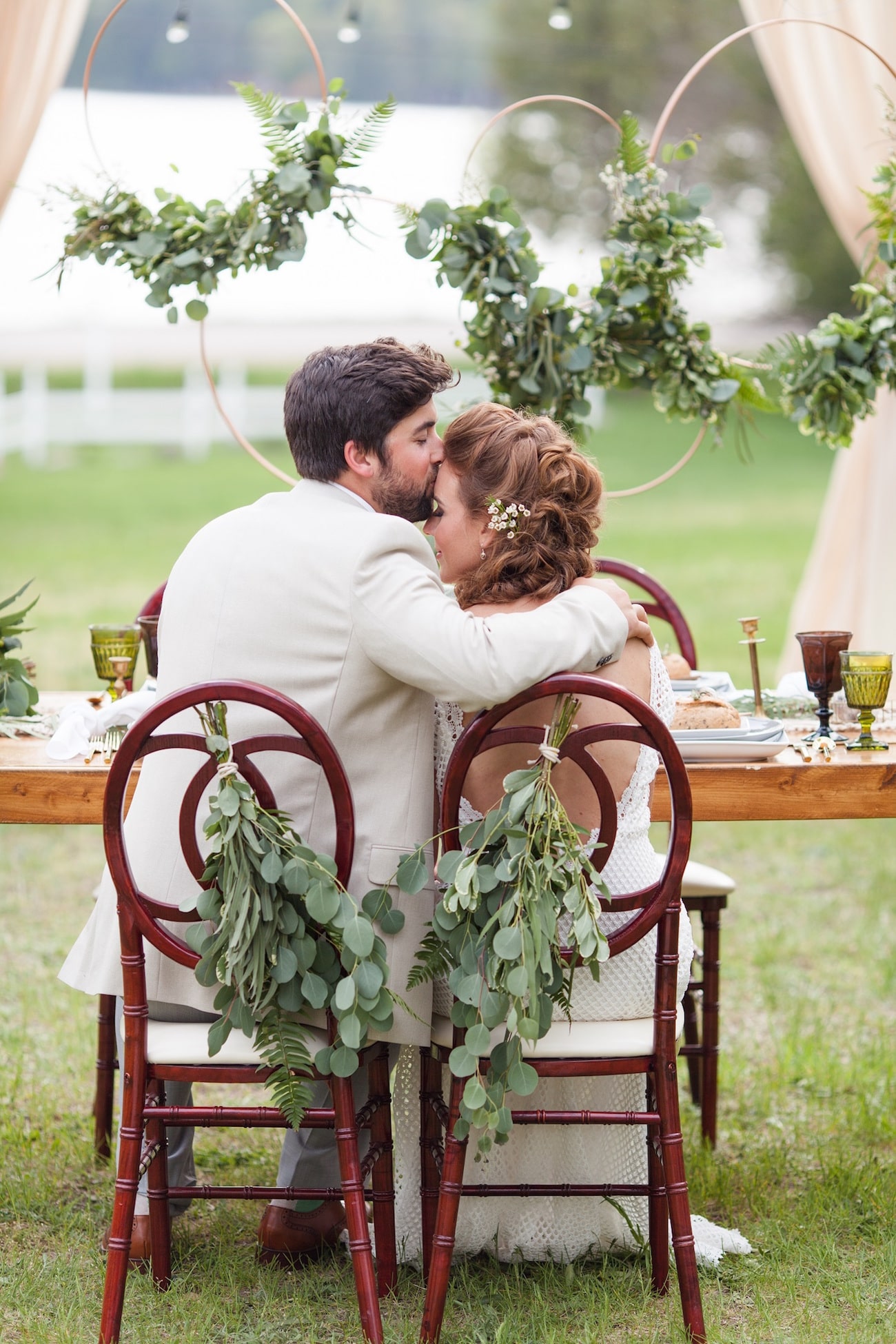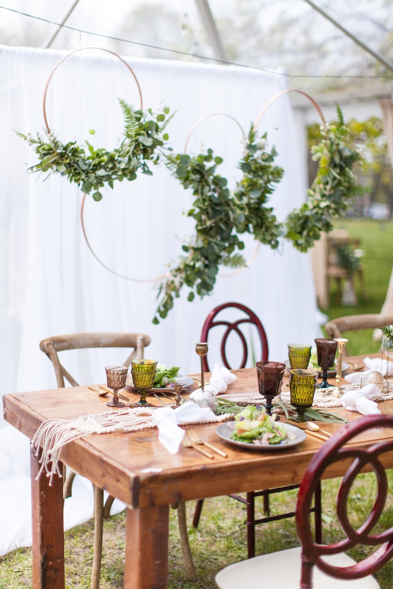 I’m dreaming of springtime blossoms and cool breezes thanks to this gorgeous inspiration! I love the fusion of styles in this shoot – a little bit woodsy and bohemian, but at the same time, clean and contemporary. The editorial (created by a talented team led by Wren Photography and Juniper & Lace Events) includes includes a beautiful array of textures: wood, macrame, copper, greenery, watercolour. So romantic! The palette keeps things fresh – a stunning combo of deep greens, bright white, and warm copper, that perfectly shows off the natural scenery of Michigan, US, where it takes place. There’s so many details, but no surprise, my fave is the donut wall – these treats are as pretty and on-theme as the flavours are mouth-watering! I also love the idea of a clear marquee and draping to go with the rest of the decor, as it adds an elegant contrast to the more earthy rustic styling of the tablescape. From ceremony styling to florals to food, there’s so much here to inspire a SouthBound bride!
