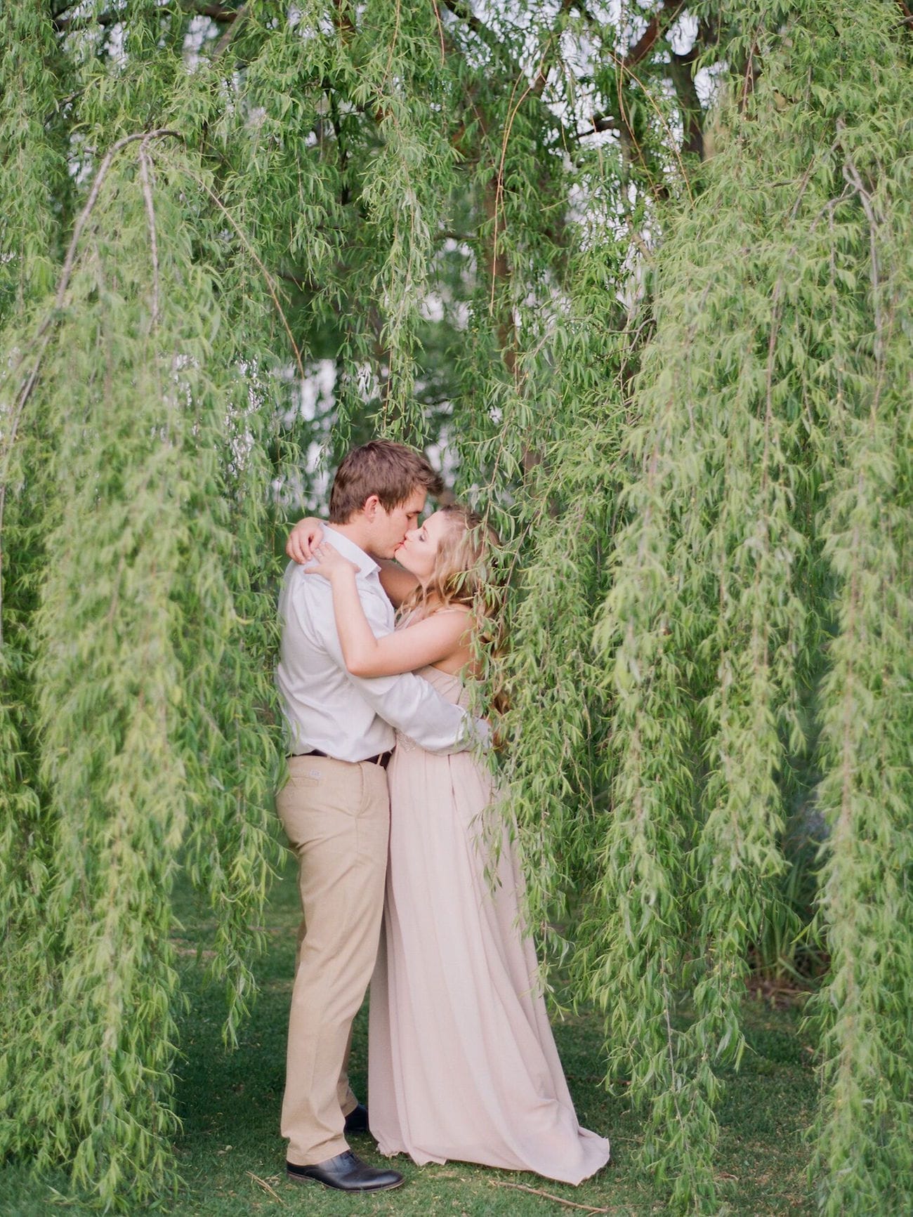 One of the things haven’t spoken about so much this month of Fine Art Weddings is photography, and TBH that’s a bit of an oversight, because so much of this style comes from the whole movement of fine art wedding photography, and the stylists who regularly work with the pioneers of that style and have together created this new trend in wedding design. And after all, there’s no point in putting all that effort into styling your big day if you’re not going to get it photographed by someone who ‘gets it’. Think Jose Villa, Elizabeth Messina, Jen Huang. That dreamy, ethereal look they are known for has a lot to do with the fact that they shoot on film, and while this is nothing new, it’s taken a while for film to make its way to SA weddings for various reasons. But over the last year or two, I’ve seen it offered more and more, and it makes my little heart so happy. Of course, film is more expensive, and digital work can be just as lovely, but I’m so glad that couples who love this look now have more options in terms of being able to choose it (most photographers who offer this as part of their wedding package shoot a combo of film and digital). One of my favourite local photographers in general, and on film in particular, is Rensche Mari. A few weeks back we featured Luan & Marné’s wedding, which she captured beautifully, and today we get to share their engagement shoot, which also happens to be all film! So you’ll get to see a perfect example of what I’m talking about. The idea is simple – an outdoor picnic, a walk among the willows. But through Rensche’s lens, it takes on a truly magical quality. Sigh!