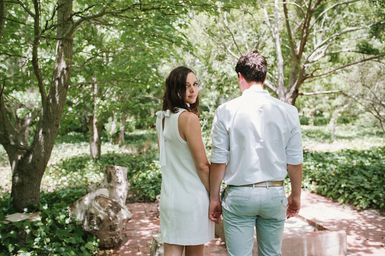 From winter to spring, we’re changing seasons from this morning’s winter wedding to this sweet e-shoot that takes place in the gardens of Val de Vie. Candice and Greg chose this locale for a relaxed stroll together and brought along a rather fabulous bouquet. And while it’s all about the love first and foremost, you KNOW I am also going to mention the styling because I do love a great choice of e-sesh outfit for the bride-and-groom-to-be! This is spring perfection – Candice in a classic Little White Dress with sequin jacket, and Greg in pastel trousers. Classic and preppy, but with just the right amount of interest to look great on camera. And look great they do, in these truly lovely pics by Claire Thomson!