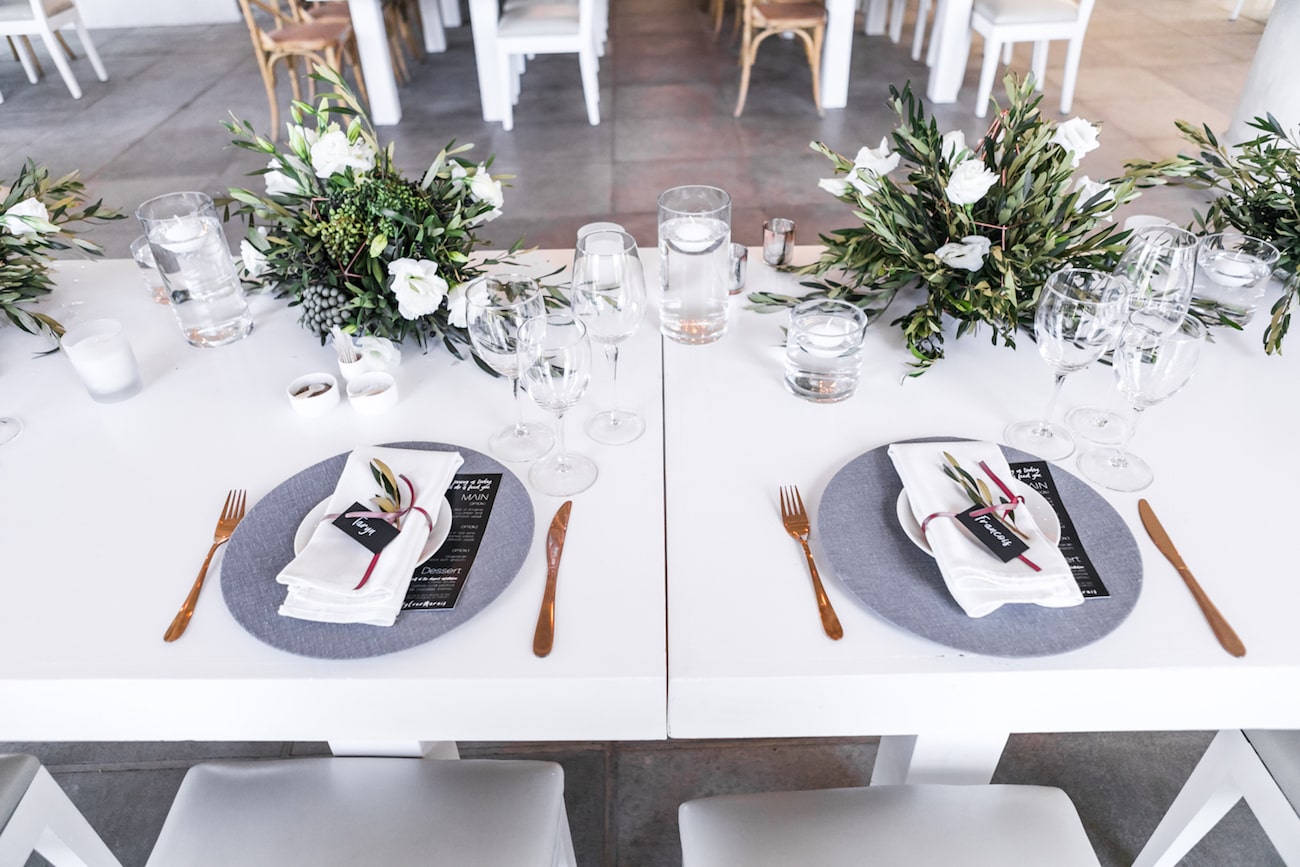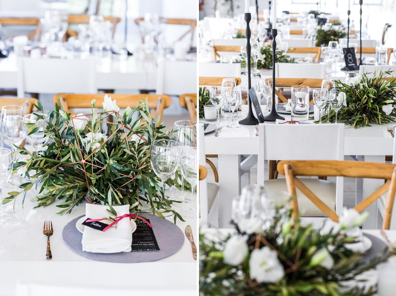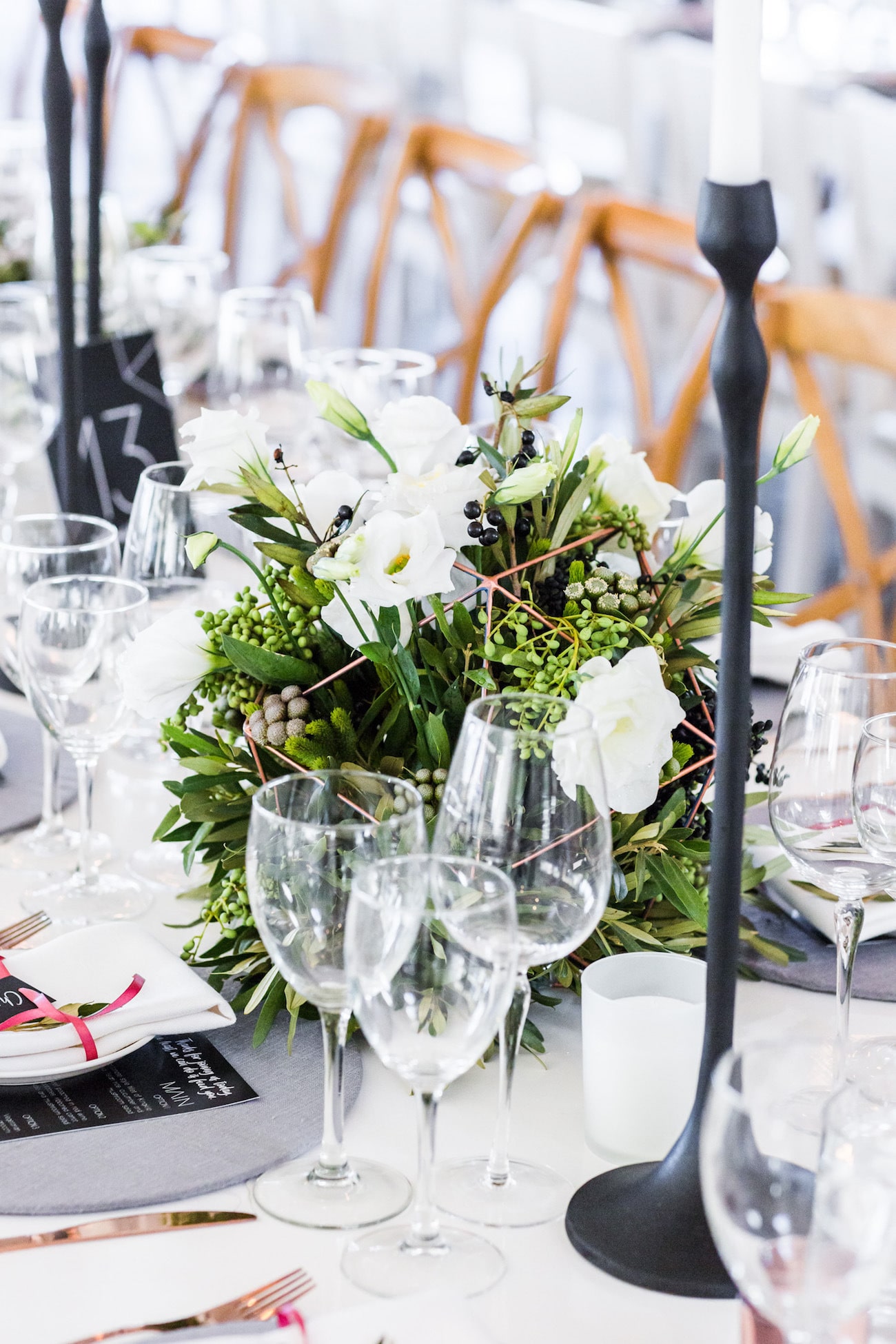 We wanted to incorporate our modern design aesthetic with the venue’s fresh green and white tone. Our colour palette was a simple grey, black, white and rose gold theme which was soft in nature and worked perfectly with the venue’s styling. We obviously wanted it to be VERY modern and match our styling, which is more contemporary and classic. We did not want to follow the typical rustic look and feel that so many modern weddings have because that isn’t our style and it isn’t true to who we are and what we like. We tried very hard not to over-clutter the location and the decor with excessive and bold features – but that does also become challenging with the tight layout of the venue. Overall our view of the day and the styling was that we managed to create something very premium and stylish which made us both very proud.