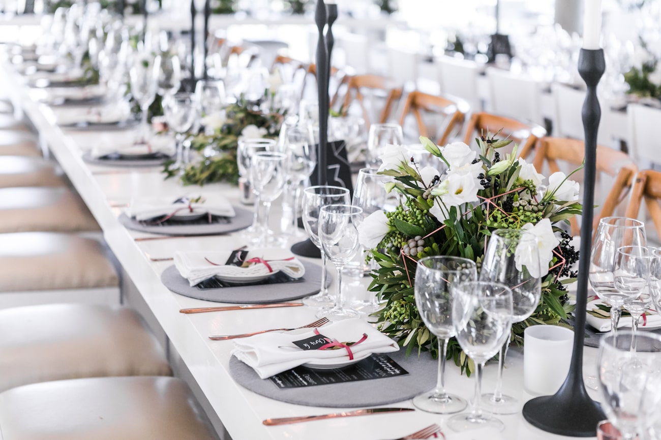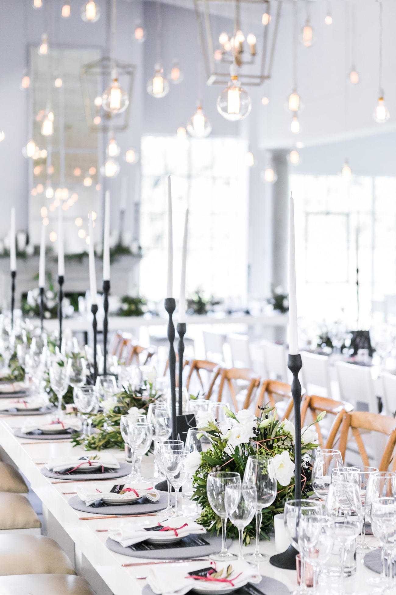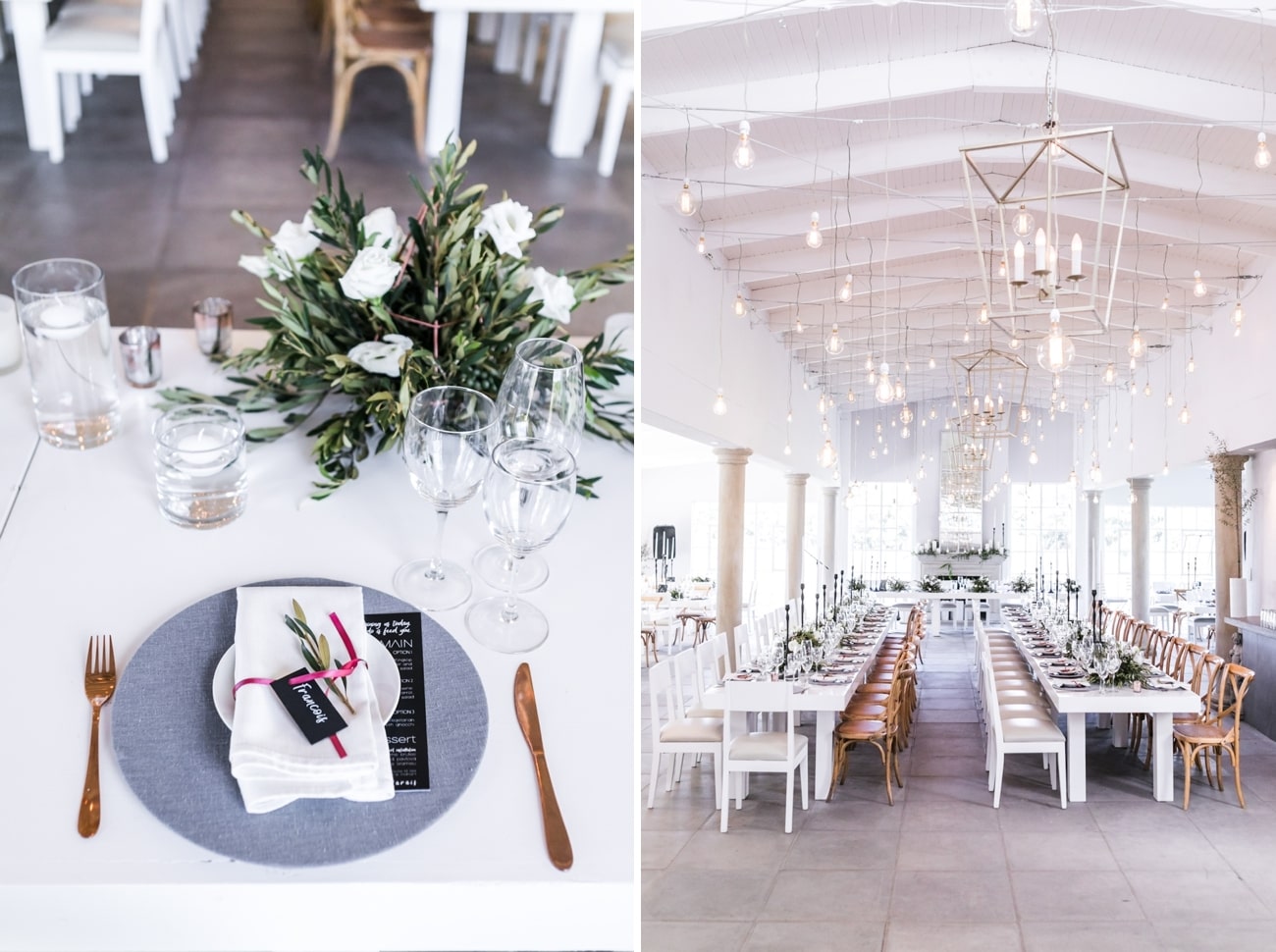 We wanted to incorporate our modern design aesthetic with the venue’s fresh green and white tone. Our colour palette was a simple grey, black, white and rose gold theme which was soft in nature and worked perfectly with the venue’s styling. We obviously wanted it to be VERY modern and match our styling, which is more contemporary and classic. We did not want to follow the typical rustic look and feel that so many modern weddings have because that isn’t our style and it isn’t true to who we are and what we like. We tried very hard not to over-clutter the location and the decor with excessive and bold features – but that does also become challenging with the tight layout of the venue. Overall our view of the day and the styling was that we managed to create something very premium and stylish which made us both very proud.