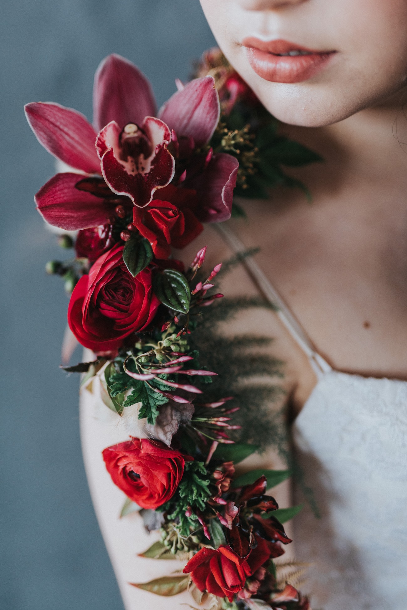 Dark and moody weddings are one of the most unexpected trends for me, but I have to say, I am loving the way that these rich palettes add something special and unusual to wedding design. Plus, you know how much I love colour, and even though they’re ‘dark’, that’s just the base of black or grey that forms a backdrop to deep reds and purples and greens, or soft mauves and blues – it’s a truly lovely combination. Today’s styled shoot takes this idea and takes it a step further, combining a moody palette with eco chic wedding ideas – LOVE. With so many couples looking for ways that they can make their wedding more earth friendly or sustainable, this team including photographer Debbie Lourens, as well as stylist Happinest Weddings and floral designer Epanouir Flower Studio, have some fresh ideas and bold inspirations. I’m especially loving the watercolor stationery on seeded paper, as well as the ‘living’ elements to the bride’s attire – such a whimsical alternative to a bouquet! Enjoy.