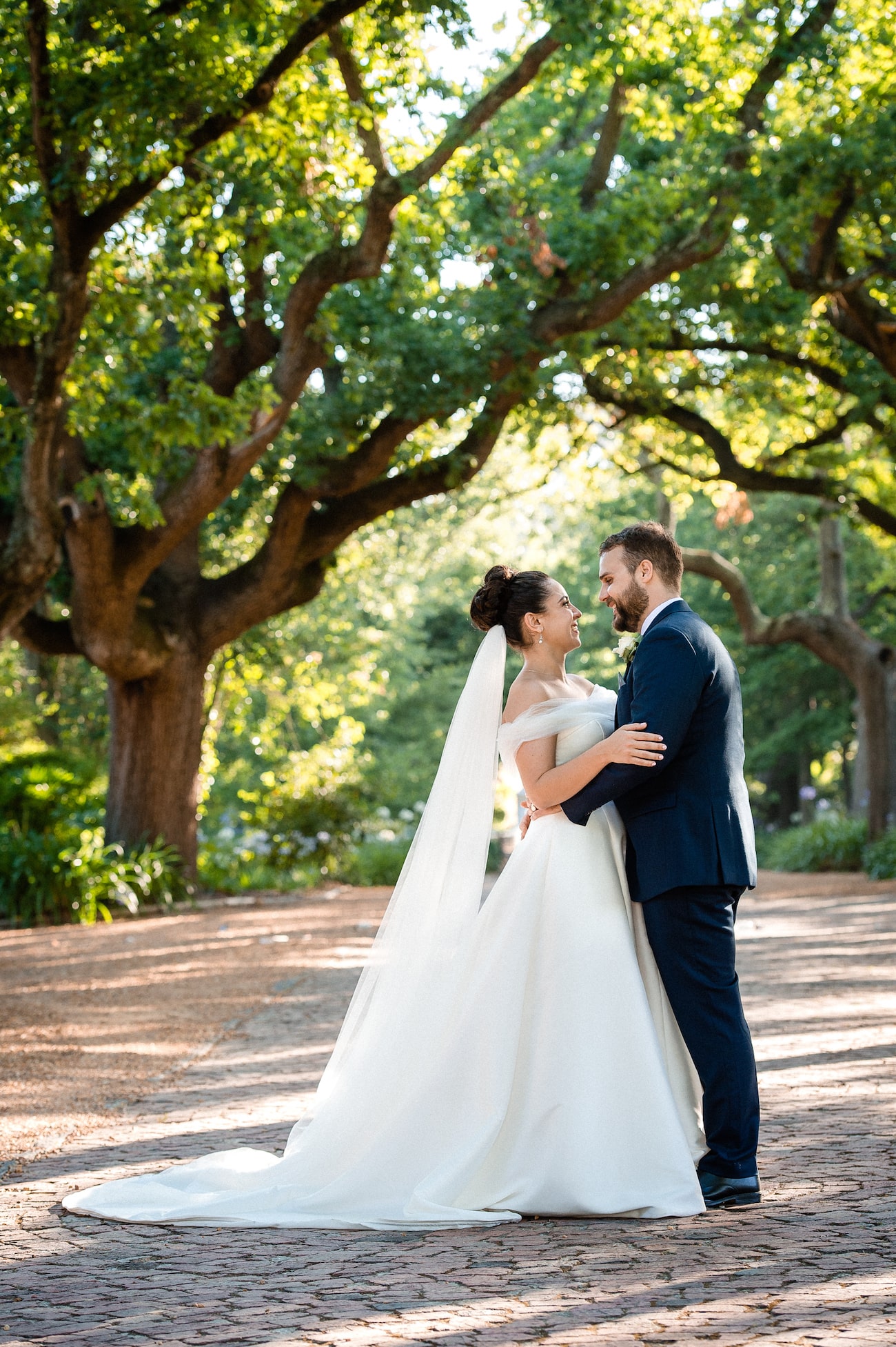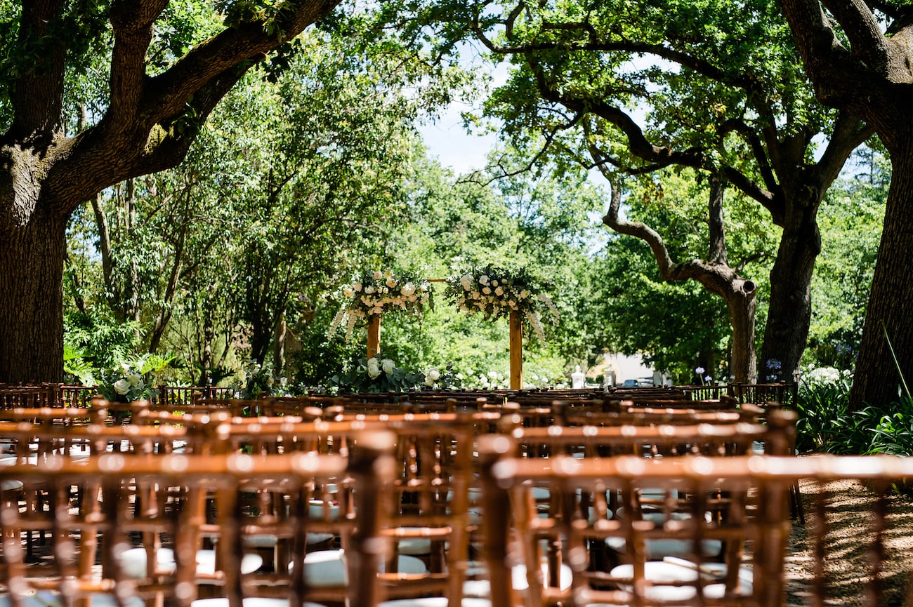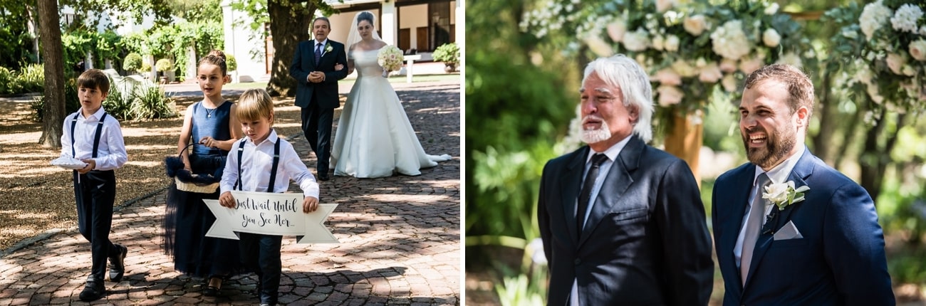 We’re both South African. Greg grew up in Cape Town and I studied there, and most of our two families live around the world, so we chose Cape Town – a great destination for everyone flying in (about 70% of our guestlist) which felt like home for us both. I knew I wanted a vineyard wedding and we visited ten venues in Stellenbosch across two days with our two moms in tow. Nooitgedacht was my favourite by far – elegant and unfussy, historic but not stuffy. I was especially in love with the idea of an outdoor ceremony and the brick lane under the arch of trees was just staggeringly beautiful. Even before I’d seen it, researching it from the US, I knew it was the one – but you have to do your research! I also loved that the name kind of reflected our story – when we started, I never would have thought we would end up at the altar so it felt like kismet. My favorite photos of us from the day are ones that showcase the natural beauty at the venue.