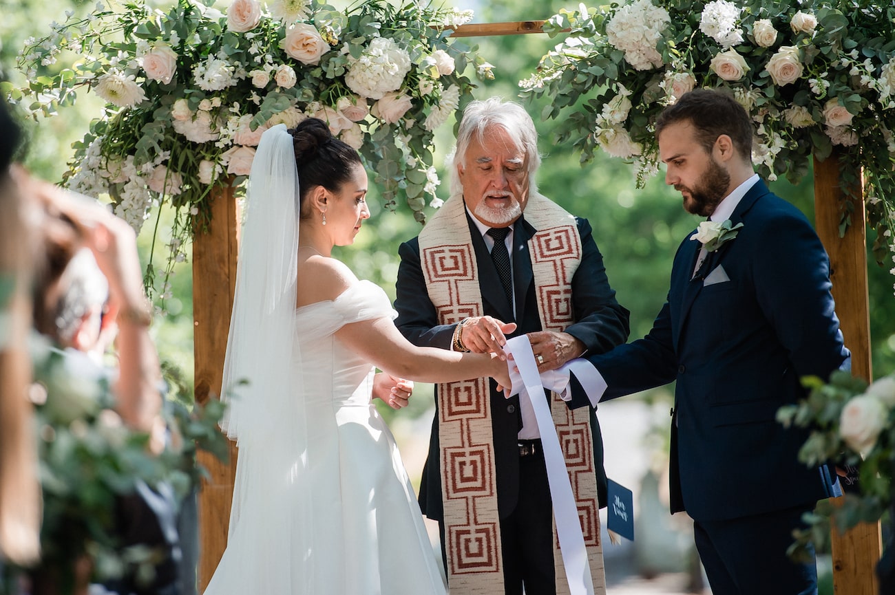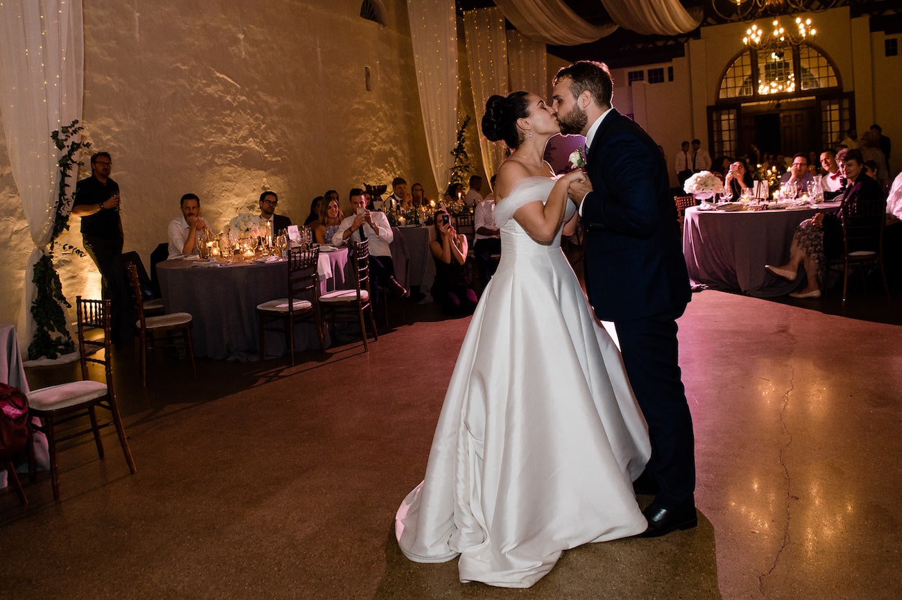 Before the ceremony started, we had a moment of silence to call our beloved departed family and friends to mind. We played a recording of my late grandfather (who was an incredible operatic singer) singing the Panis Angelicus and it was a really peaceful and beautiful moment. We also had a number of guests who weren’t able to make it to the wedding because of illness so we set up a YouTube live stream for everyone who wanted to witness the ceremony but couldn’t be there. Pretty much every guest who wasn’t there in person watched via the live stream and it meant so much to them to still be included even though they couldn’t be there. The vows were also very moving – and then our couple shoot funny enough. Our photographers were incredible, and made us feel so relaxed. So we really had fun, got to relax and enjoy ourselves alone for a bit in the midst of the craziness. Oh! And right at the end of the night – our closest friends and bridesmaids stayed with us after the reception was over – we grabbed some champagne and kicked off our shoes and hung out with them for a few hours just reminiscing and enjoying the end of such an amazing day. My brother made a little toast then and it was really special. And then Greg carried me over the threshold into our room while they all cheered and clapped – it was such a fun end to an awesome day.