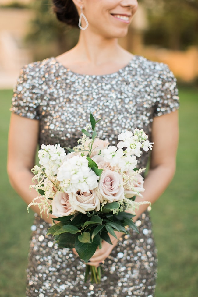 Glamazon brides: your dress is here! This beauty, Seraphine by UK designer, Gibson Bespoke, is the perfect choice for a luxe bride – one who’s chic and sophisticated, and not afraid of a little bling! With shimmering paillettes and sheer sleeves, this one is a true showstopper. It matches perfectly with a wedding design that’s extra in all the right places – think modern Gatsby: crystal chandeliers, mountains of flowers, sparkly bridesmaids, designer shoes, and touches of marble and gold.
