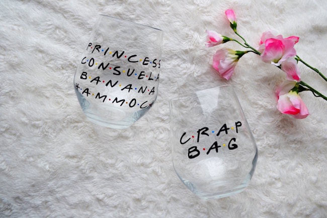 OMG is this not the best. thing. ever? This is pretty much the ultimate wedding gift for a Friends fan like me – the Princess Consuela/Crap Bag episode is a classic and this Phoebe and Mike glasses set captures the fun perfectly!