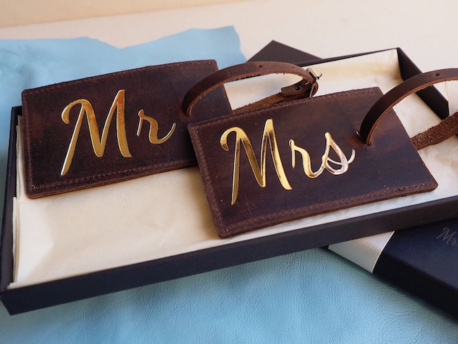 For the couple who love to travel, these Mr & Mrs leather luggage tags are a great way to personalise their suitcases and celebrate their union.