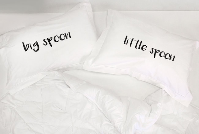 The couple that spoons together, stays together! This is such a cute little gift – his and hers pillowcases with ‘big spoon’ and ‘little spoon’ on them. Aww!