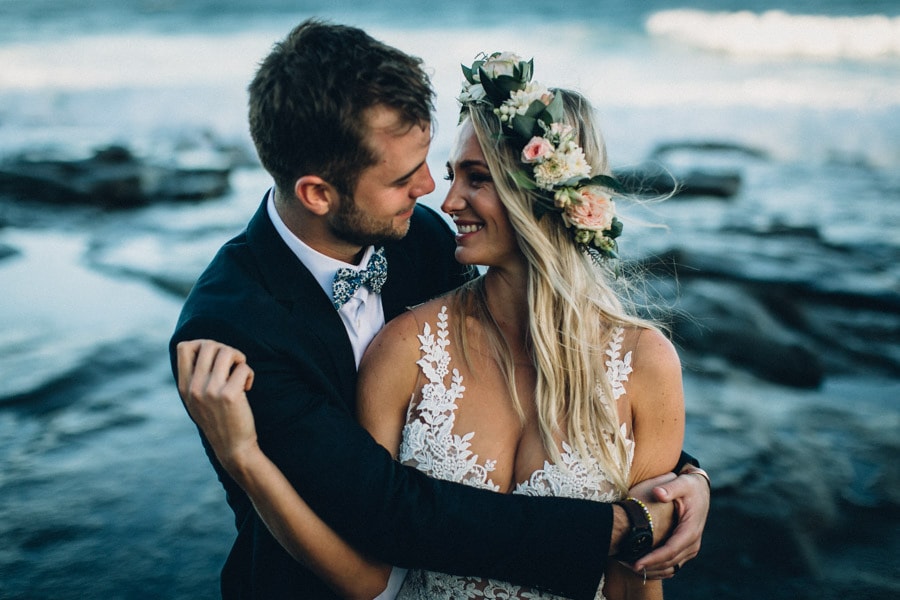 This time of year I think we’re all missing the beach a bit, so I seriously can’t think of a better real wedding to kick off our 2018 lineup than Chantelle & Ricky-Jon’s (in fact, I’ve been keeping this beauty up my sleeve for that exact reason) – you guys, this is what beach wedding dreams are made of! Think soft, romantic details, watercolour stationery, a gorgeous tropical setting, fine art ocean-style decor by the supremely talented Absolute Perfection, bridesmaid dresses billowing in the sea breeze… sigh. The tables are simple but perfectly styled, right down to the calligraphed rock place holders and the textures of basket and driftwood – a fine art take on rustic beachy chic that I can’t get enough of. And on top of that, there’s an adorable love story and hilarious account of the proposal from the bride and groom – loved these so much I had to call my mom and read them to her! Aw! And let’s not forget the final cherry on this sundae of amazingness – the most romantic images from Grace Studios. Wow. Way to kick off an amazing year, right?