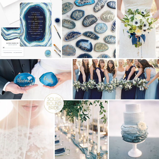 Row 3: Centrepiece (Hannah Duffy Photography/Louise Beukes of BLOVED Blog/Bo Boutique) | Escort Cards with Flowers (Joey Kennedy Photography/Lora Kelley/Mallory Joyce) | Dusty Blue Bridesmaid Dresses (Erin Stubblefield Weddings and Portraiture/Magnolias)