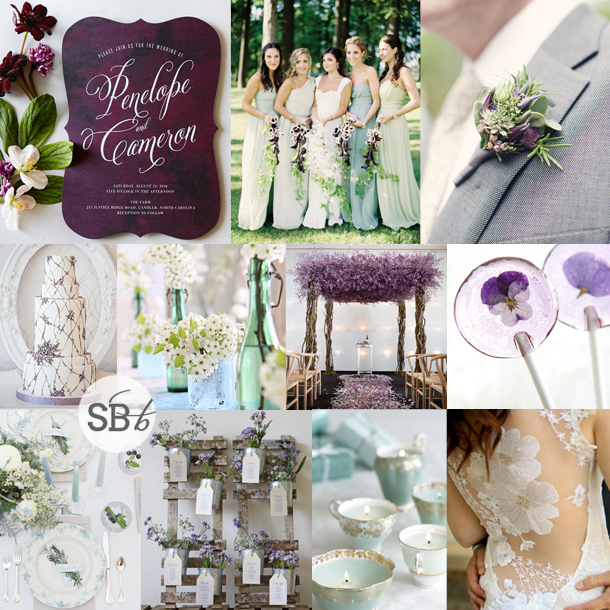 Hello friends! We’re entering the final stretch of the year now, and I don’t know about you, but my head is all over Christmas and new year. Starting next week, we’ll be looking back at our favourite parts of the year here on SBB, but first, we still have some more fresh inspiration to send your way. And first up is this pretty inspiration board, which mixes a strong pansy purple with soft pastel greens and blues. I think it’s so pretty, don’t you? And absolutely lovely for a summer wedding, allowing you to bring in the bright berry shades that are so popular at the moment, balanced with the softer summer hues. Gorgeousness.