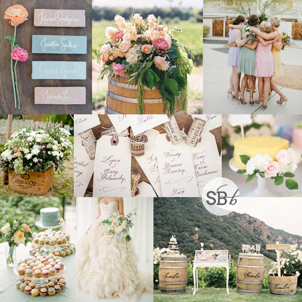 Hello lovelies! We started our Monday with winter whites, but now it’s time to add some colour to your afternoon. Specifically, pastels, because we LOVE pastels, don’t we? I’ve done quite a few pastel boards before (and I’m especially fond of mixed ice cream pastels, let’s be honest), but today I wanted to do a little more of a grown-up pastel board, combining the soft rainbow of shades with elegantly rustic vineyard style. I am absolutely loving how it’s turned out, aren’t you? Here’s hoping this is one board I see brought to life by a real bride soon. (PS Find more pastel inspiration here!)
