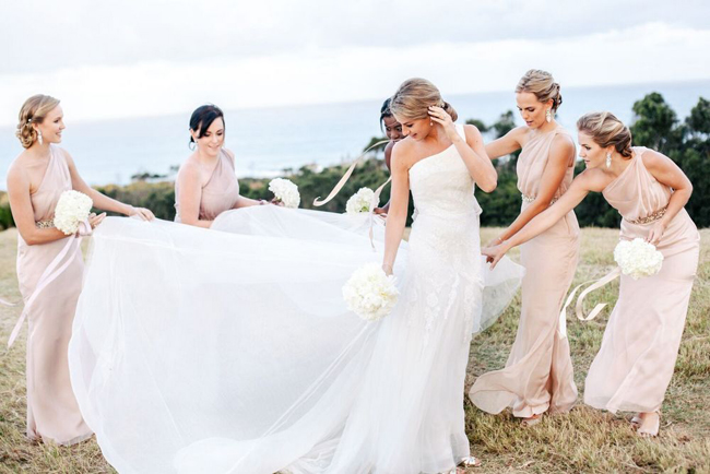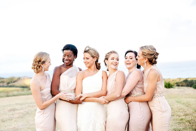 I had five bridesmaids who were an absolute dream to work with. I chose five different shades of nude chiffon and went with an off the shoulder style with beading under the waist. I wanted them to look elegant and feel beautiful!