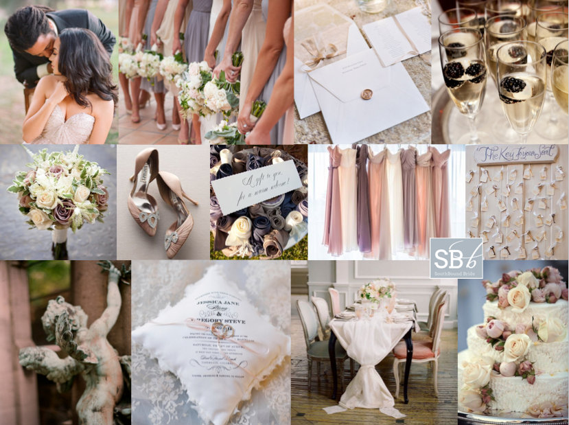 Row 2: Ceremony setting (Virgil Bunao Photography/Easton Events) | Bride with simple floral crown (JoPhoto/MOD Events Charleston) | White tiered cake (Jemma Keech/The Cake & I)