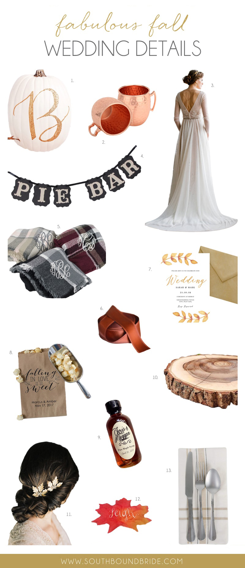 - Have a Plan B: A crisp autumn afternoon makes for a lovely outdoor ceremony, and hot cider on the lawns with falling leaves as a backdrop sounds amazing, but as with all outdoor elements to a wedding, be sure you have a good Plan B in place in case there’s rain or heavy wind (or just a particularly cold snap). Make sure that you have a covered area set up for food especially.