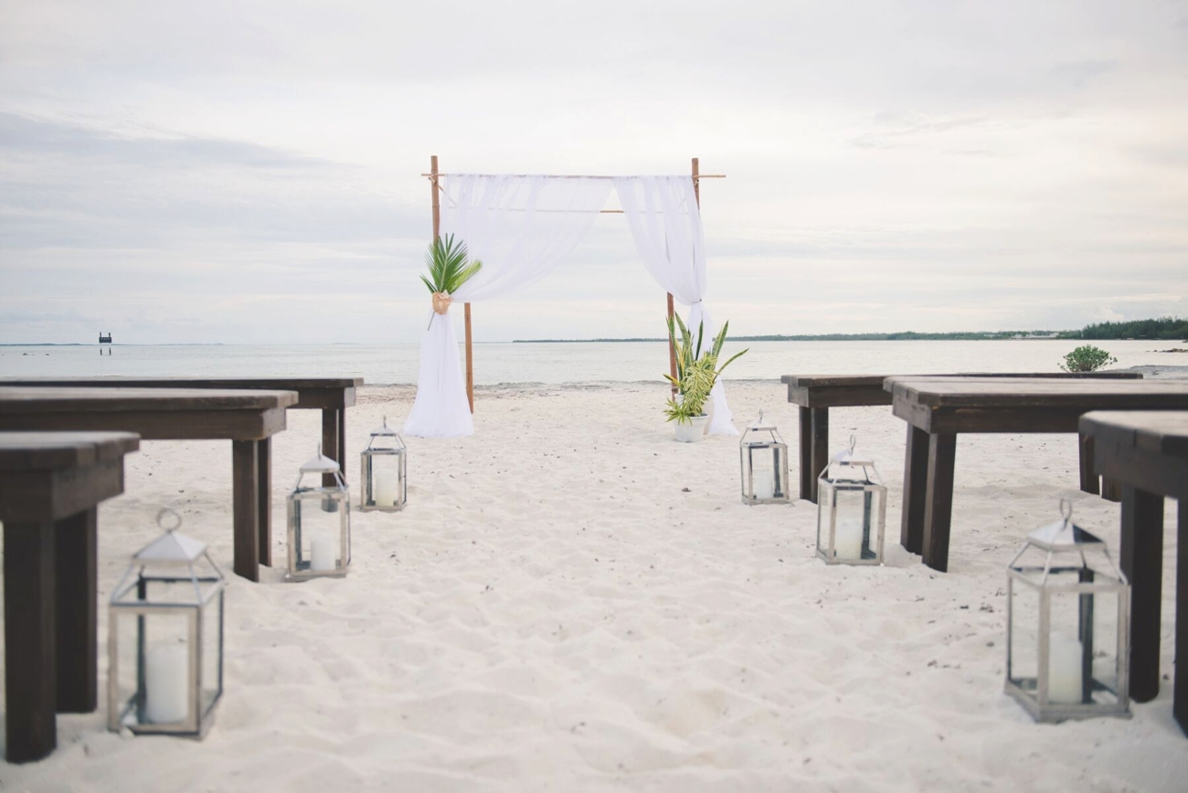 Another massive stress reliever is knowing you have a certified planner onsite, as you do at Abaco Beach Resort. And when it comes to those decor details we all love so much (but which are kind of a nightmare to plan from afar), we’ve got you covered. The AS editors have curated the most gorgeous design options for our Aisle Society Weddings, like a conch shell ring bearer holder to a custom Save the Date, to custom linens. Picture farmhouse tables under bistro lights, bamboo chairs, and small silver hurricane lamps. SO pretty.