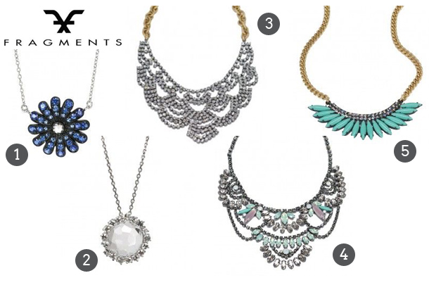 1: Blue sapphire flower necklace; 2: Starburst set round; 3: ; 4: Stephanie necklace; 5: Mint mohawk necklace