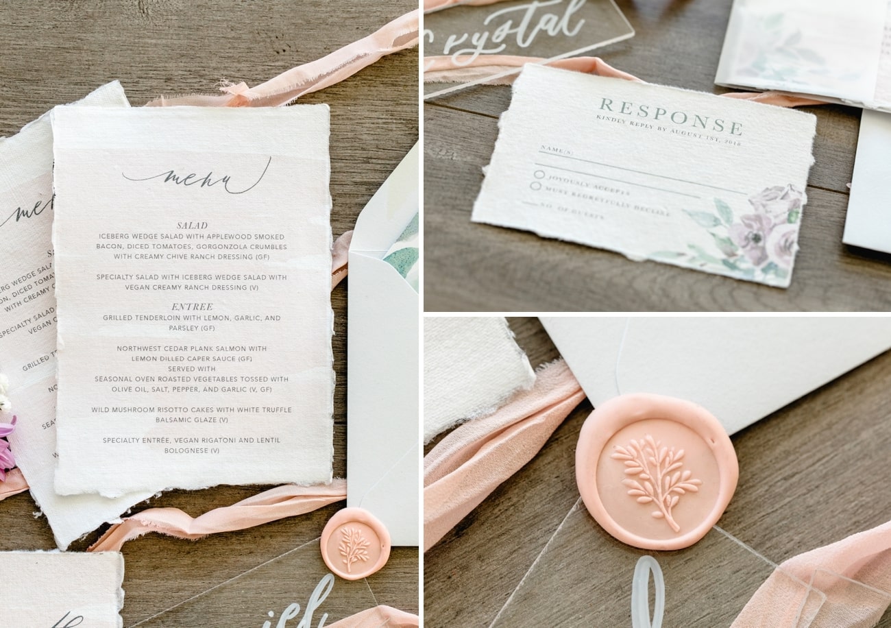 Our florist wanted to keep things pretty muted, but also wanted to add a couple of touches of colour into their pieces. By adding a couple orchids into the bouquet with a dreamy lavender contrast, it was modest yet eye catching. And we loved the detail of the twisted wire on the bout! We were in love with our acrylic signage created by Letters & Dust which featured the pastel colours with brush strokes to mesh them all together. Our miniature cake was also perfect for a couple to cut, complete with a sherbert orange that ombred down to a light brushed blush which perfectly contrasted with the groom’s suit.