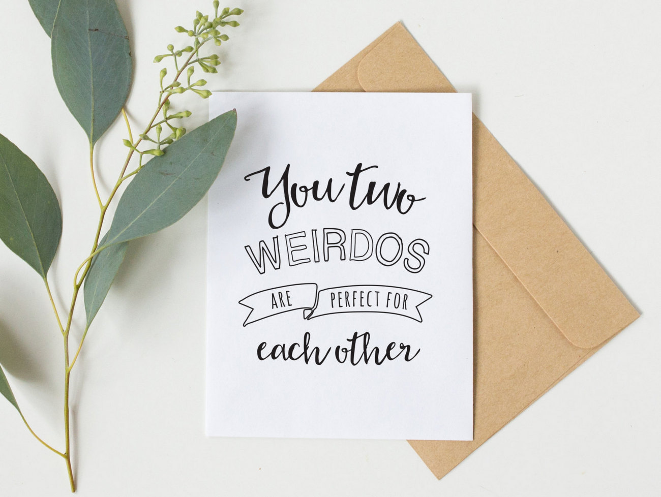 ‘You Two Weirdos’ Engagement Card by Beccy Kitty Designs