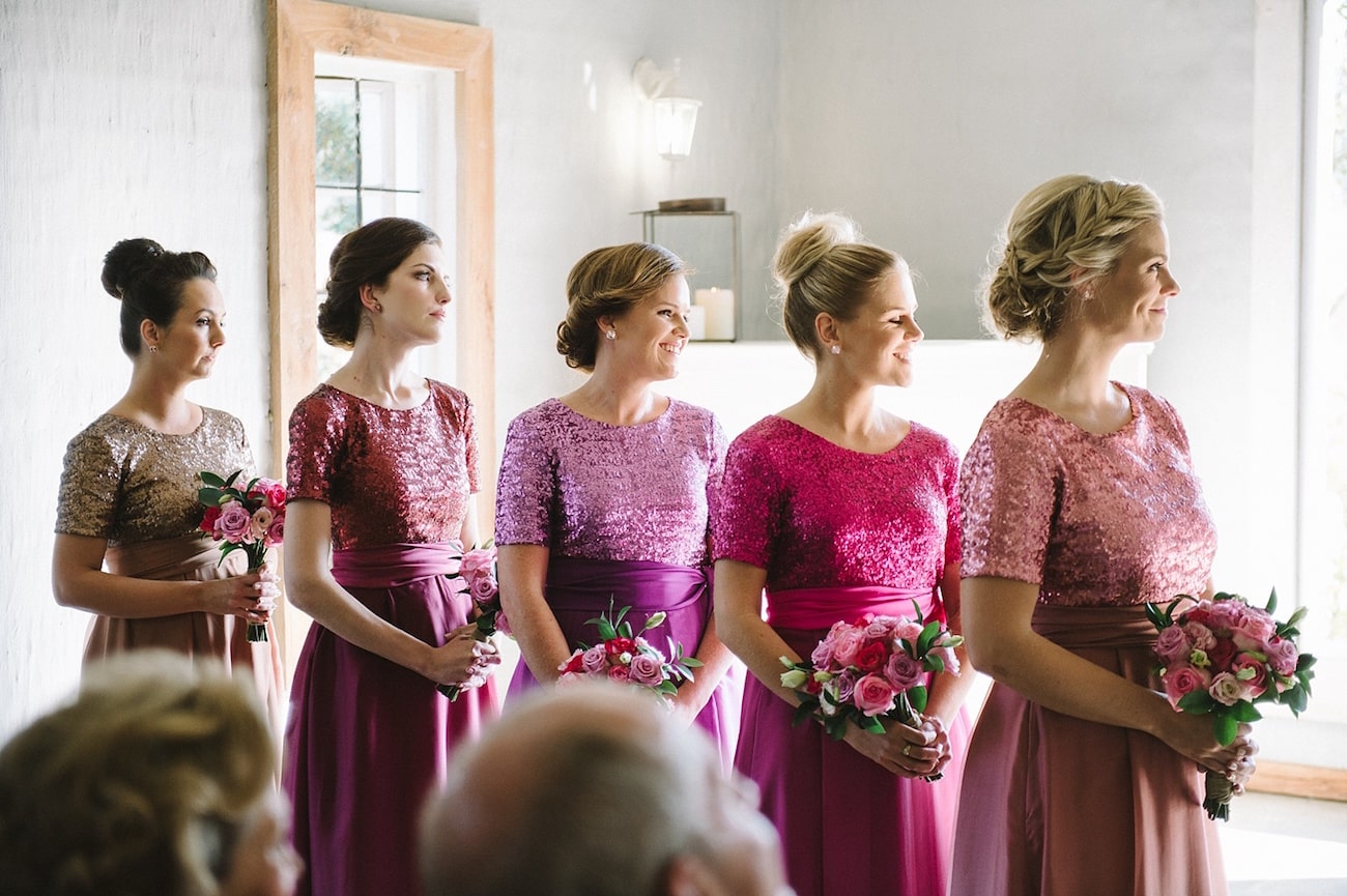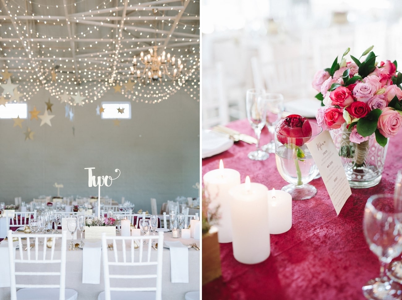 I’m a little biased because I adore her, but it seems to me that everything that’s in front of Eileen of Bright Girl‘s lens turns to gold. Or in this case, gold and sparkle, plus lots of bright, bold, beautiful colour! Lana and Greg’s wedding brought a whole punch of festive flair to the KZN winter – fat red peonies, roses in every shade of pink, velvet linens, a ceiling dripping in stars and twinkle lights, a shiny gold pear at every sitting. And the bridesmaid dresses – oh my! I’m obsessed with Lana’s choice of gowns, which manage to be romantic and a little ethereal, while also being colourful and super stylish – LOVE! They worked perfectly with the abundant blooms and with Lana’s own dreamy pale blush wedding gown and perfectly matched the mix of whimsicality and grown-up glamour that characterised this very special celebration. All brought to life by Eileen’s lovely pics of course! Get those pinning fingers ready!