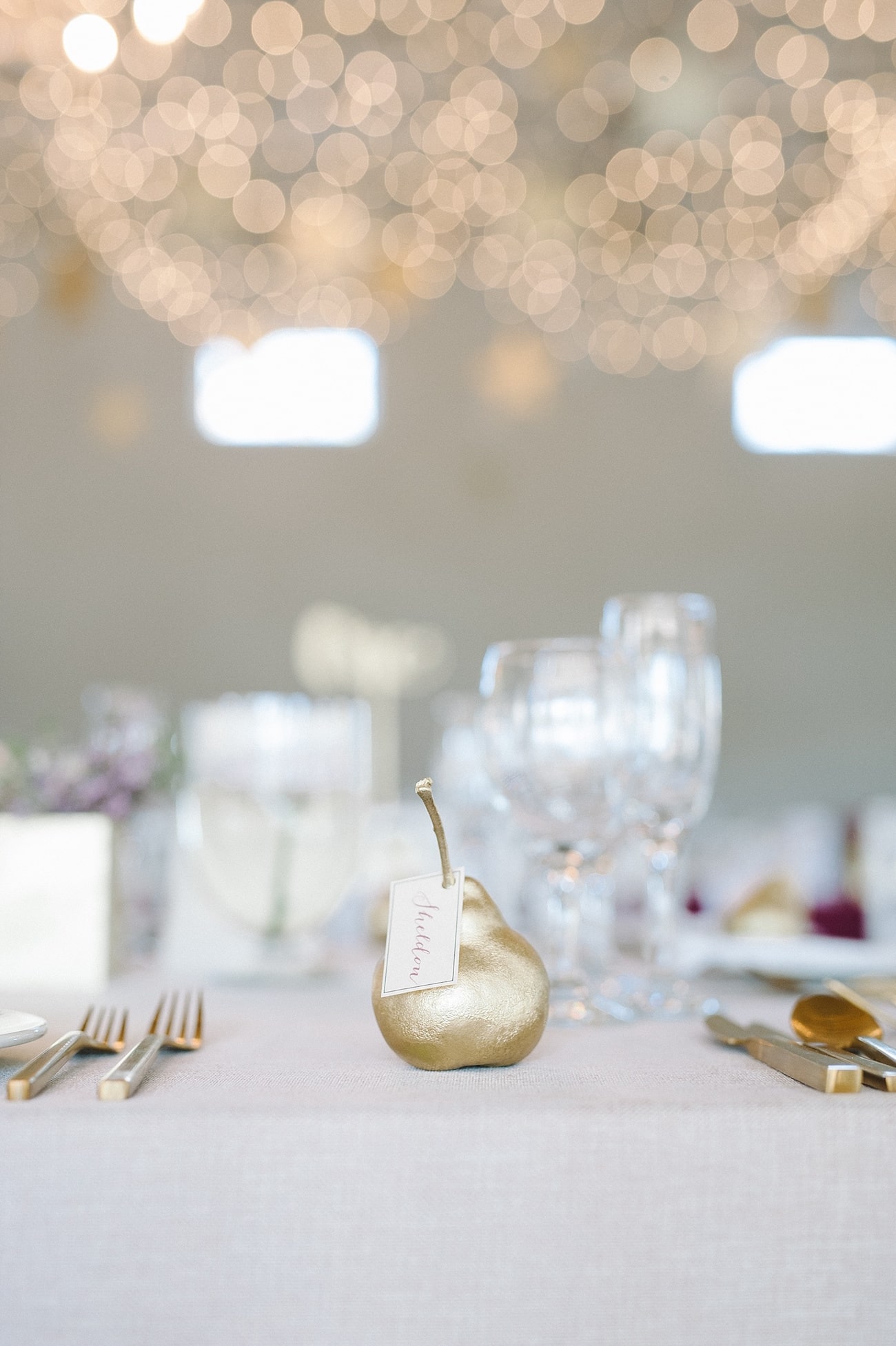 Most of our wedding was DIY, which I loved. Our family is very creative and hands-on, so it was extra special to have everyone involved. The gorgeous bridesmaid dresses were lovingly made by my step-mom, our gold flower boxes made by our super talented friend, which I then sprayed gold. I designed our stationery and Greg, one of his brothers, and our MC sprayed all 143 pears gold for our name card holders. The gold stars which hung from the ceiling in our reception were also handmade and sprayed by my Dad and step-mom. Our flowers were just perfect and so beautiful. All of our flowers and floral arrangements were made by such wonderful ladies in our family. They had such a fun time, and really brought our ideas to life.