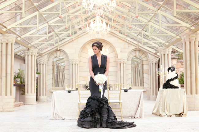 Who says you have to wear white on your wedding day? With today being the spookiest day of the year, I’m taking the opportunity to showcase some seriously gorgeous black gowns that are sure to please an edgy or alternative bride. But even if Gothic isn’t your vibe, you might still want to consider a black gown. After all, the designer credited with bringing black to the bridal runway is none other than Queen Vera of Wang, and celebrities including Shenae Grimes, Ellen Pompeo, and Avril Lavigne have all rocked black wedding dresses on their big day. The key is to keep hair and makeup very soft and romantic, and choose gowns with beautiful textural detail, so the look is romantic and ethereal instead of harsh and Halloweeny. There are some absolutely BEAUTIFUL black (and other alt-coloured) gowns on Etsy, where I find designers are often both fashion-forward and accessible price-wise. I’ve rounded up 15 of the most gorgeous I could find!