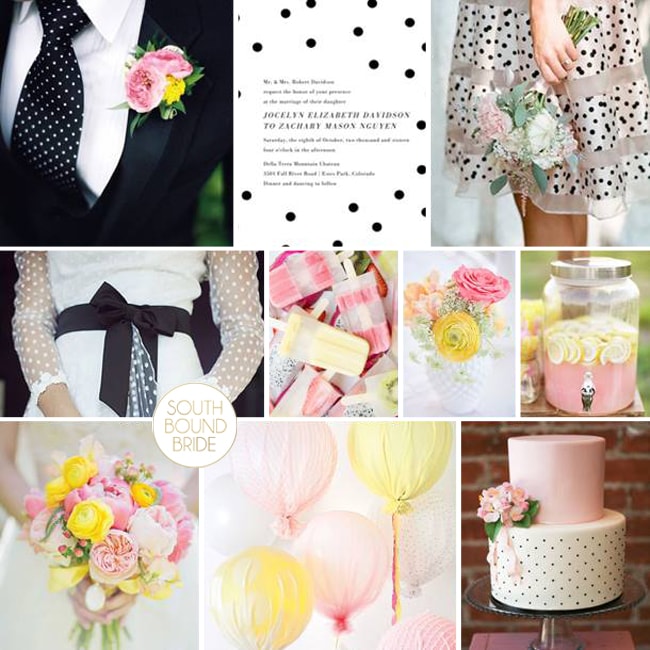 Row 2: Hibiscus invitation (Mospens Studio) | watercolour cocktails sign (Lindsay Madden Photography/Momentus Special Events & More/Julie Song Ink) | centrepiece (Kristina Curtis Photography/Calie Rose)