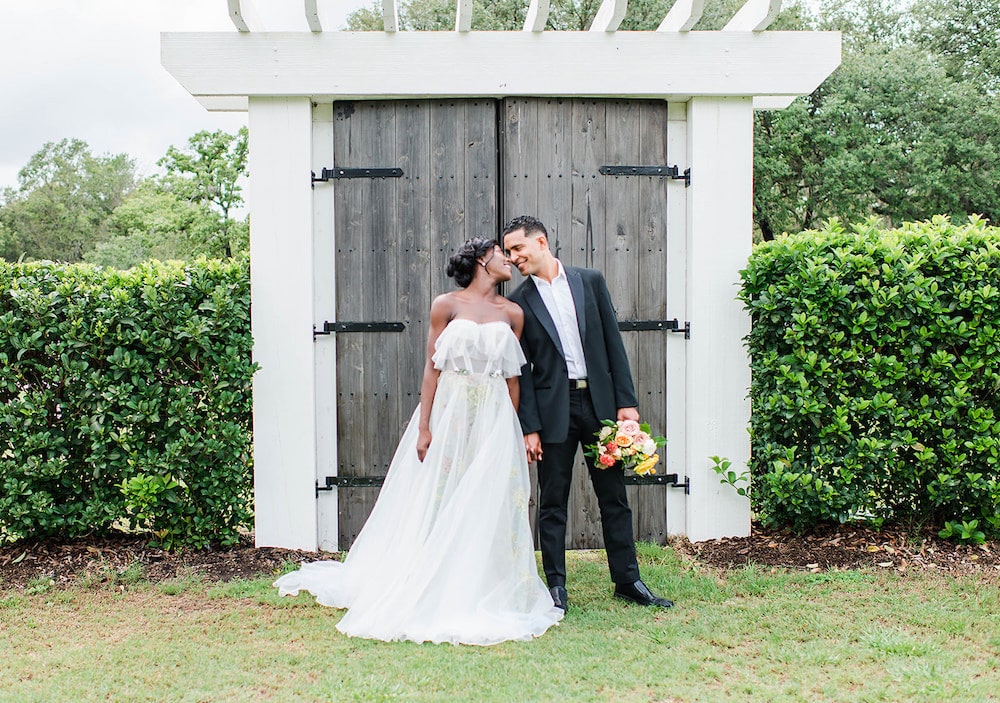 Oh garden weddings, you have my heart! Today’s styled shoot has such a lovely, genteel feel about it – a delicate take on garden wedding style in the most delicious shades of lemon, cream and pale blue (a palette that on its own made me fall right in love!). Shot at the Bramble Tree Estate in Florida, USA, the creative team brought their vision to life with romantic touches like soft linens, vintage plates, gorgeous calligraphy invitations, and a wow-factor gown that is just perfect for the pretty summer vibe! With the bride sporting a beautifully whimsical updo, and the groom handsome but laid back in an open shirt and suit, this is my kind of warm weather wedding style – just add lemonade! Thanks to photographer Amy Saavedra and her team of talents for sharing this prettiness with us!